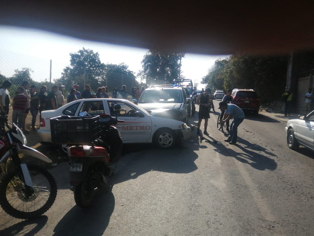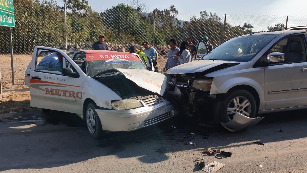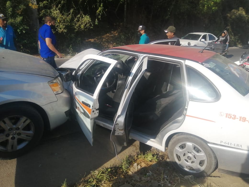 Al llegar al lugar se confirma la novedad tratándose de un choque entre los siguientes vehículos: Volkswagen Derby color blanco de un radio taxi, se atiende a las siguientes personas, chófer de 34 años de edad, a la valoración presenta herida cortante de aproximadamente 3 centímetros en órbita ocular izquierdo, un probable traumatismo craneoncefalico severo, posible estallamiento de vísperas, se traslada al hospital Santa Rosa para su atención médica.