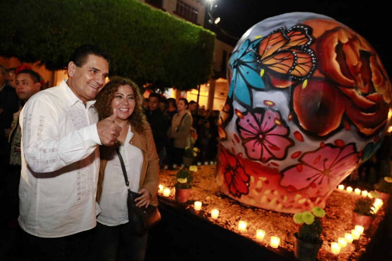 El Gobernador de Michoacán, Silvano Aureoles Conejo, acompañado de Víctor Manuel Manríquez González, presidente municipal de Uruapan, recorrió la Pérgola Municipal y la Plaza “Mártires de Uruapan” donde quedó manifiesta la creatividad de las y los uruapenses, así como su hospitalidad y la alegría con la que viven estas tradiciones.Más de 55 mil velas adornaron lugares emblemáticos de Uruapan, como el Centro Histórico, el Parque Nacional y el Parque Lineal La Camelina, que adornadas con flor de cempasúchil, que dejaron maravillados a miles de turistas que formaron parte de la tradición de Noche de Muertos.