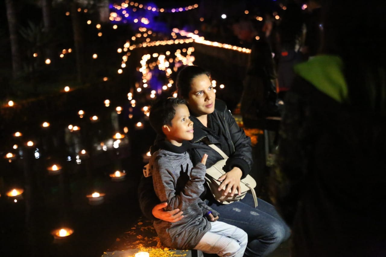 Uruapan, Michoacán, a 2 de noviembre de 2019.- Al calor de las velas, miles de visitantes vivieron la Noche de Ánimas a través del 12° Festival de Velas que se llevó a cabo en la Plaza Principal.