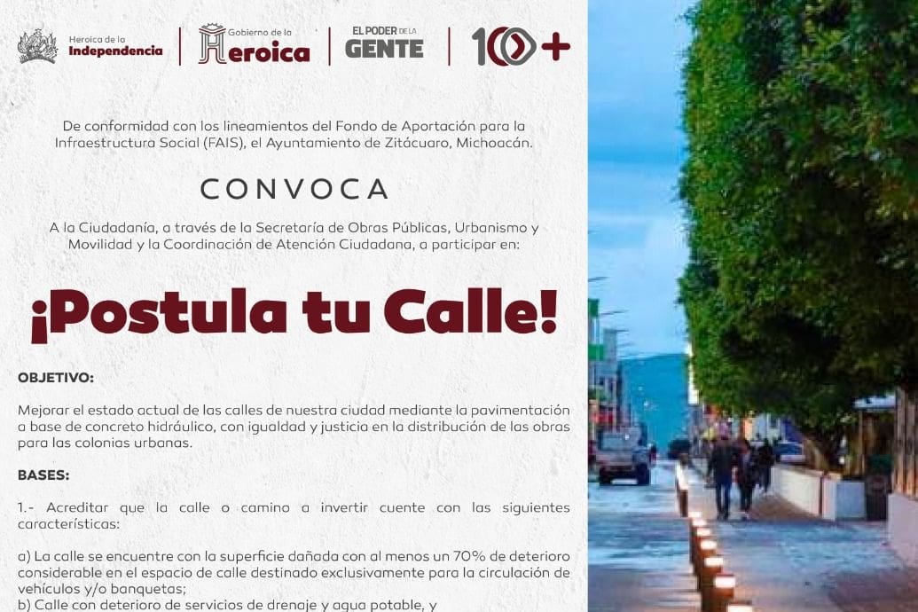 A través de este programa, los ciudadanos de Zitácuaro podrán proponer las calles o avenidas que requieren una renovación inmediata. El requisito principal es que los solicitantes sean residentes de la zona donde se encuentra la calle propuesta.