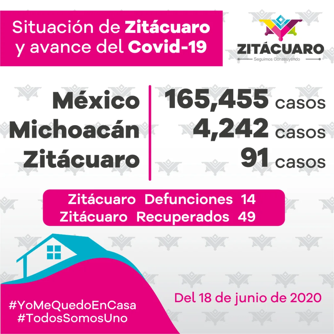 De acuerdo al comunicado diario emitido por el Comité Estatal de Seguridad en Salud y a la información publicada en https://michoacancoronavirus.com/nuevaconvivencia/ en Zitácuaro y el estado, con corte al 18 de junio, de 2020, se reportan: