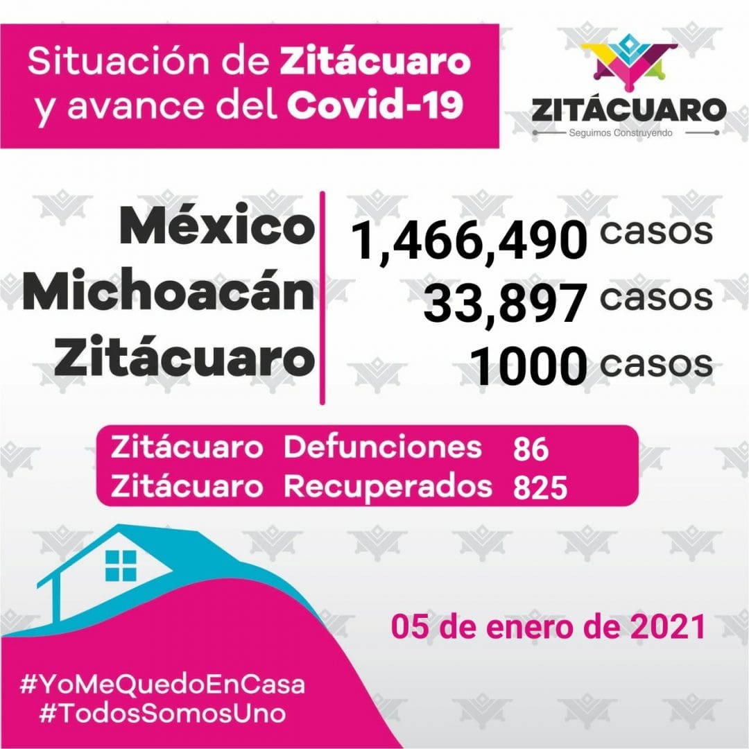 ⚠️ Zitácuaro reporta hoy 3 muertos y 20 nuevos casos por COVID-19, suman 1000 casos confirmados