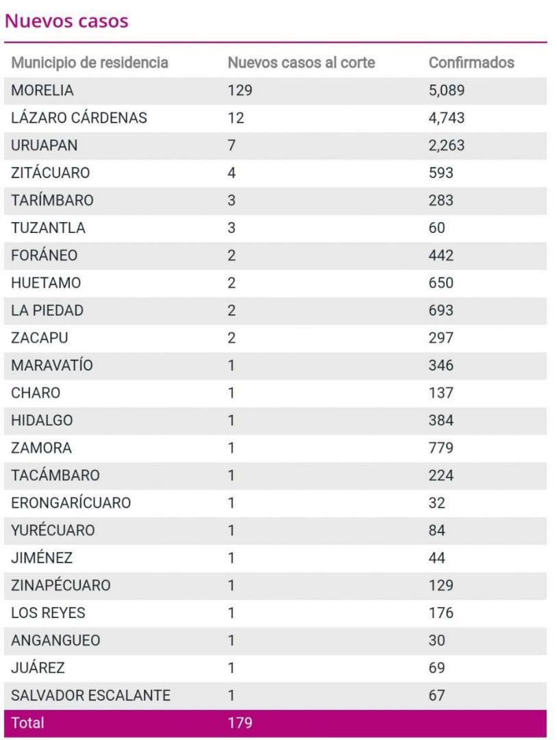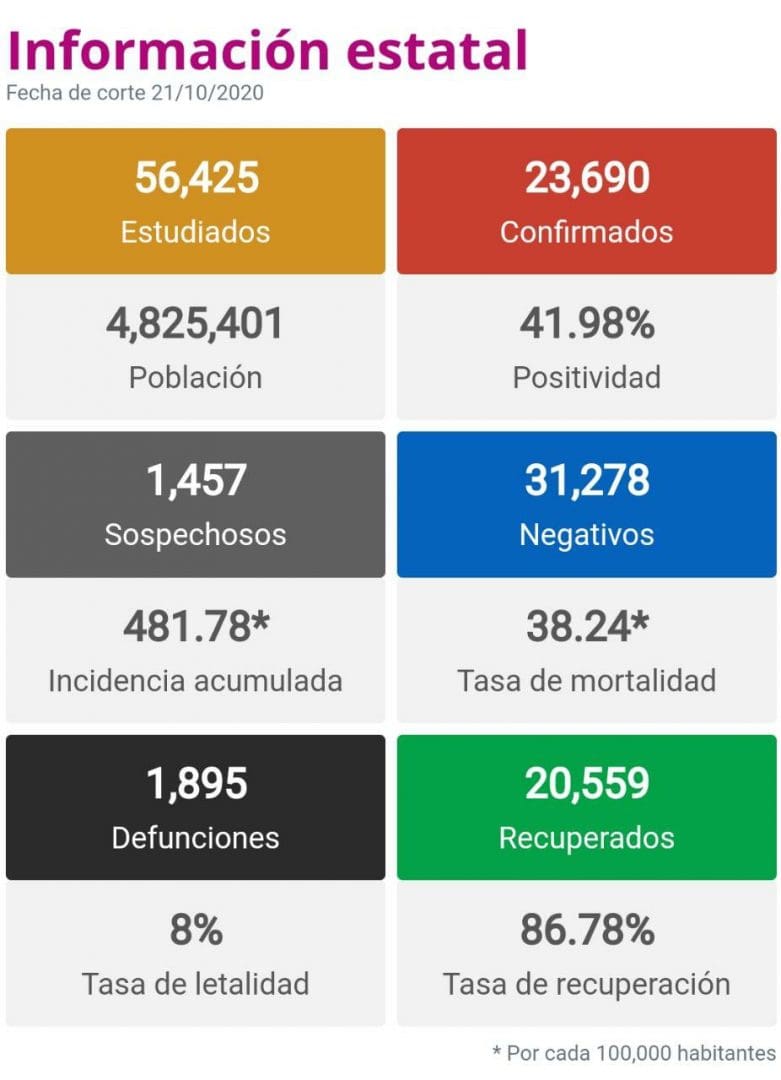 El Gobierno municipal de Zitácuaro que encabeza el alcalde Hugo Alberto Hernández Suárez, informa la situación de covid-19 en Zitácuaro, de acuerdo al reporte diario emitido por el Comité Estatal de Seguridad en Salud y a la información pública, que se encuentra disponible en https://michoacancoronavirus.com/nuevaconvivencia/ con corte al 21 de octubre de 2020:
