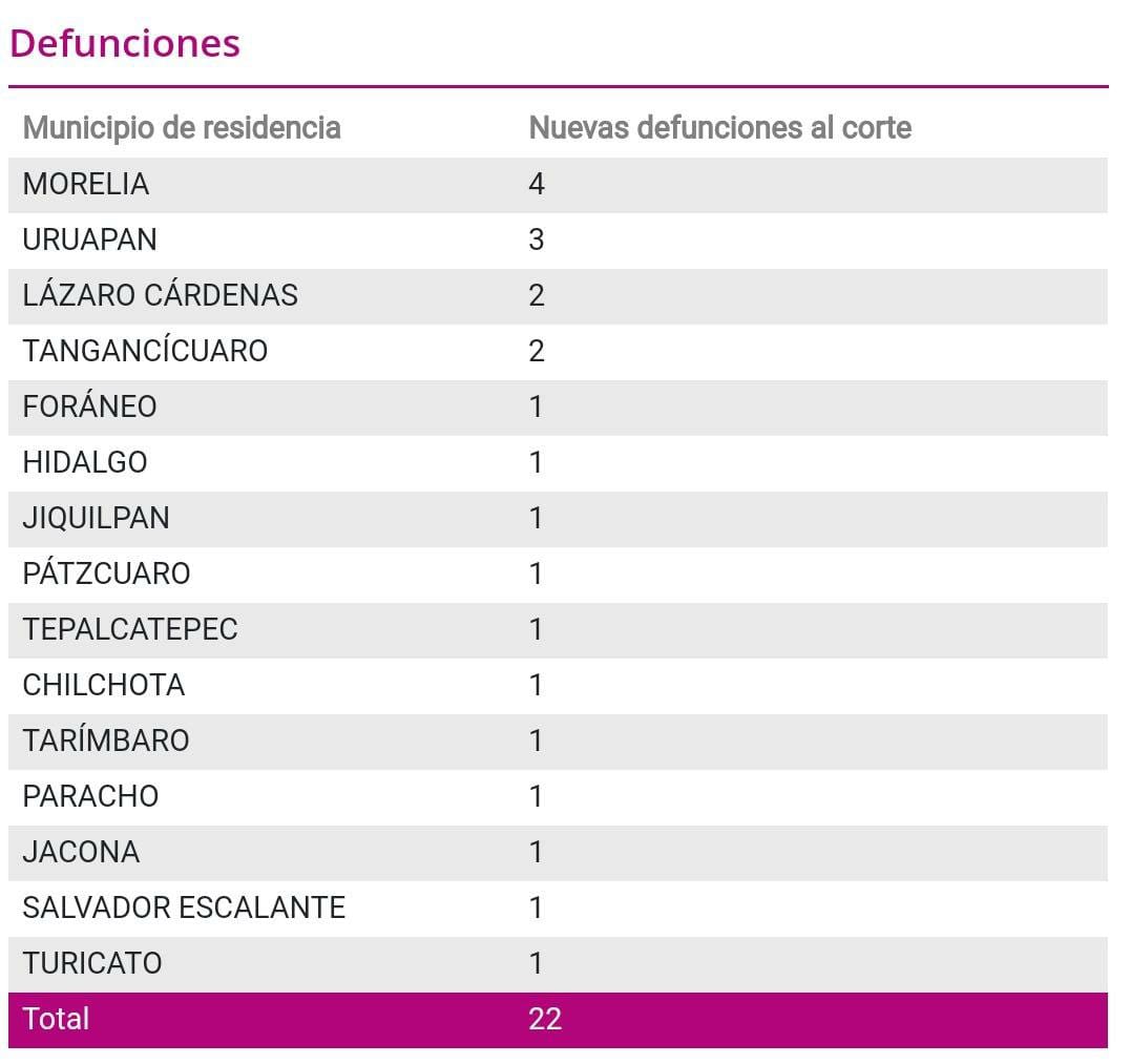 Zitácuaro reporta hoy 4 casos positivos a COVID-19, suma 593 casos confirmados, hay 24 casos sospechosos en el municipio y acumula 48 defunciones.