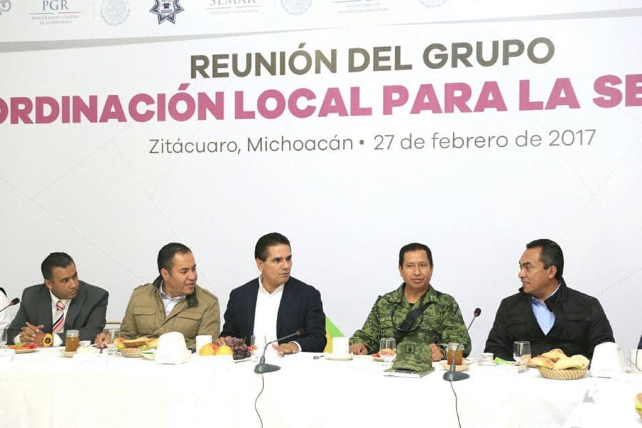 • Silvano Aureoles Conejo encabeza en Zitácuaro la reunión del Grupo de Coordinación local, acompañado de los integrantes del Gabinete de Seguridad.