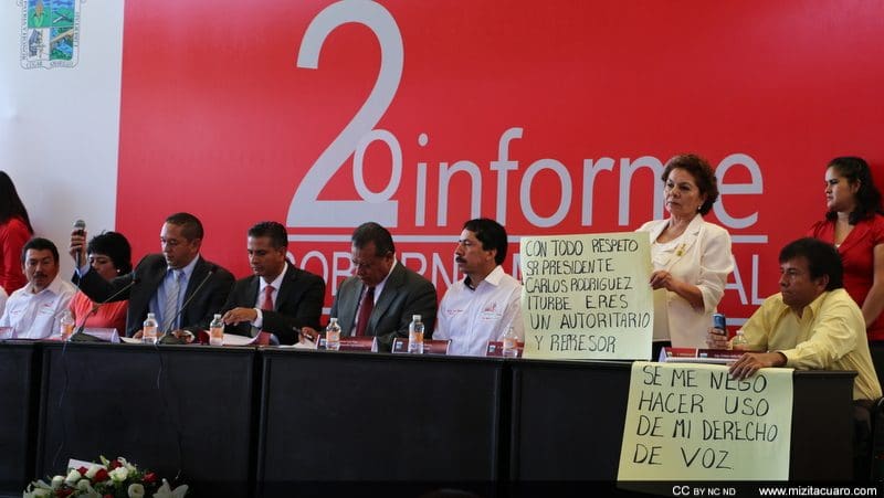 Durante la intervención del Alcalde de Jungapeo, regidores de la fracción del PRD se manifestaron con pancartas, con la cuales, denunciaron la falta de espacio y tiempo para hacer uso de la voz en respuesta del informe dado a la ciudadanía y servidores públicos.
