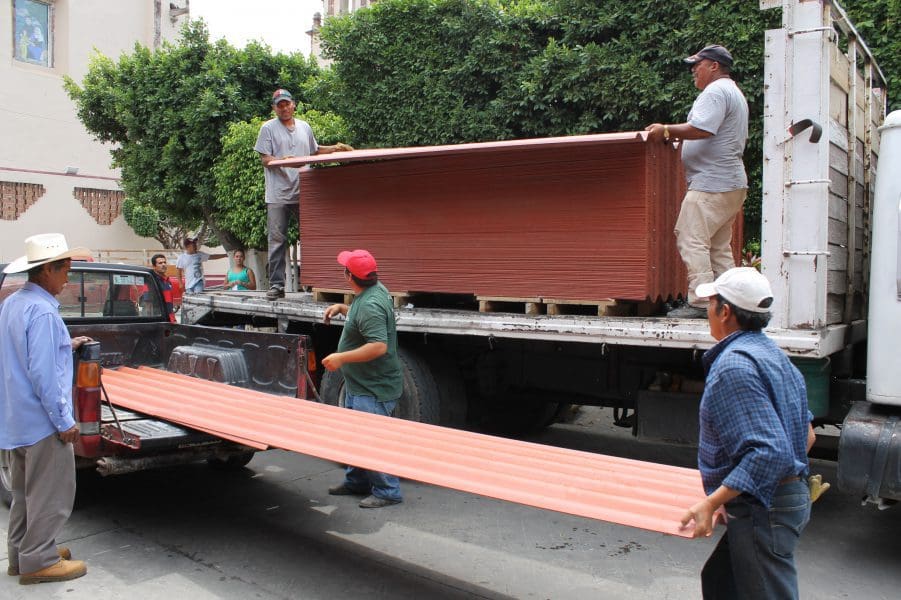 El viernes, la Congregación Mariana Trinitaria envió las láminas de fibrocemento al municipio de Jungapeo, mismas que recibió el edil Carlos Rodríguez Iturbe, para empezar a distribuirlas entre las familias de escasos recursos en las comunidades. “Las láminas servirán para arreglar los techos de las casas, especialmente de las comunidades de Las Guásimas, El Carrizal, La Mora, Huanguitio, El Cerrito del Muerto, tenencia Lázaro Cárdenas, Piedras de Lumbre, Puerto de Itziapo y Puerto de Jungapeo”, afirmó Carlos Sinué Gutiérrez López, de Desarrollo Social.