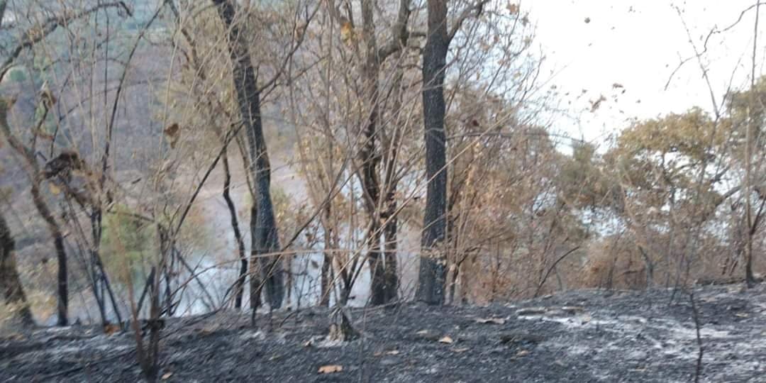 Jungapeo, Michoacán.-Con la finalidad de sofocar el incendio suscitado en las comunidades del Espinal y la Hierba Buena, la Brigada Contra Incendios, Seguridad Pública Municipal, Ecología,Así como Protección Civil acudieron a estas comunidades para sofocar dicho incendio,el cual este siniestro afectó 30 hectáreas forestales de este municipio.