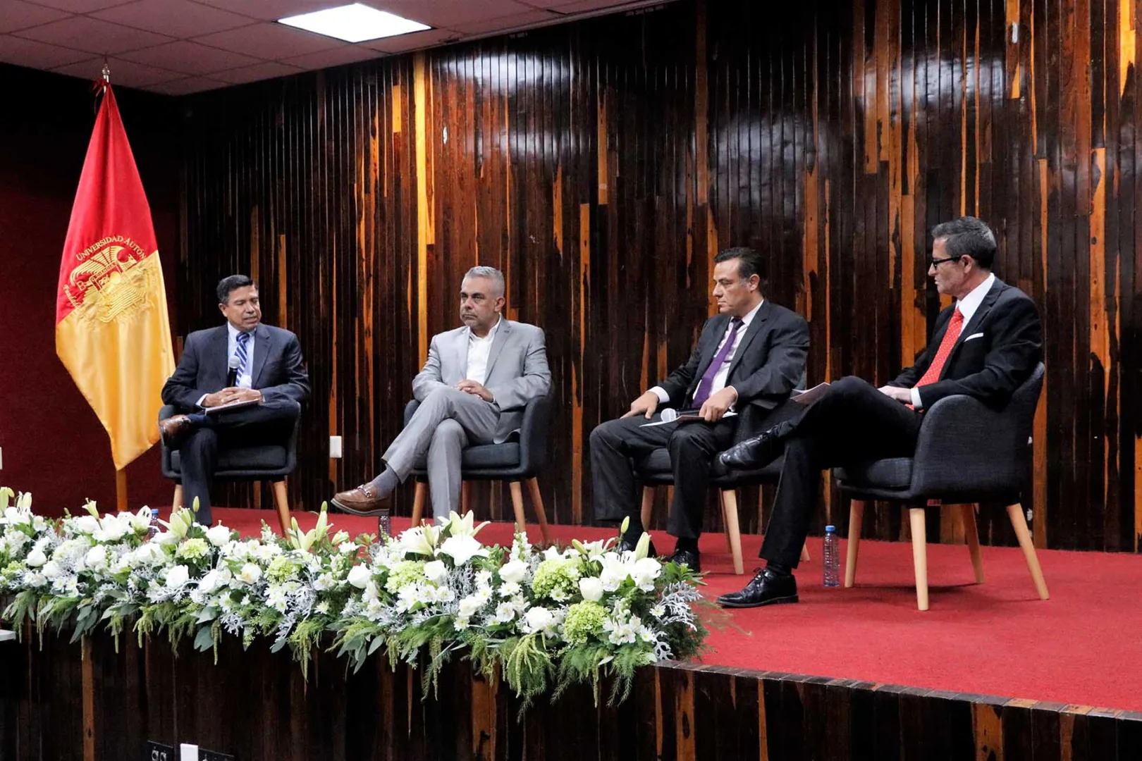 En esta mesa de diálogo intervinieron el Ing. Joel García Ornelas, Decano de Diseño, Ciencia y Tecnología de la UAG; el Dr. Mauricio Rincón Moreno, Director de Investigaciones de la Universidad Agustiniana de Colombia; y el Mtro. Humberto López Gómez, Director de Innovación Educativa de la UAG.