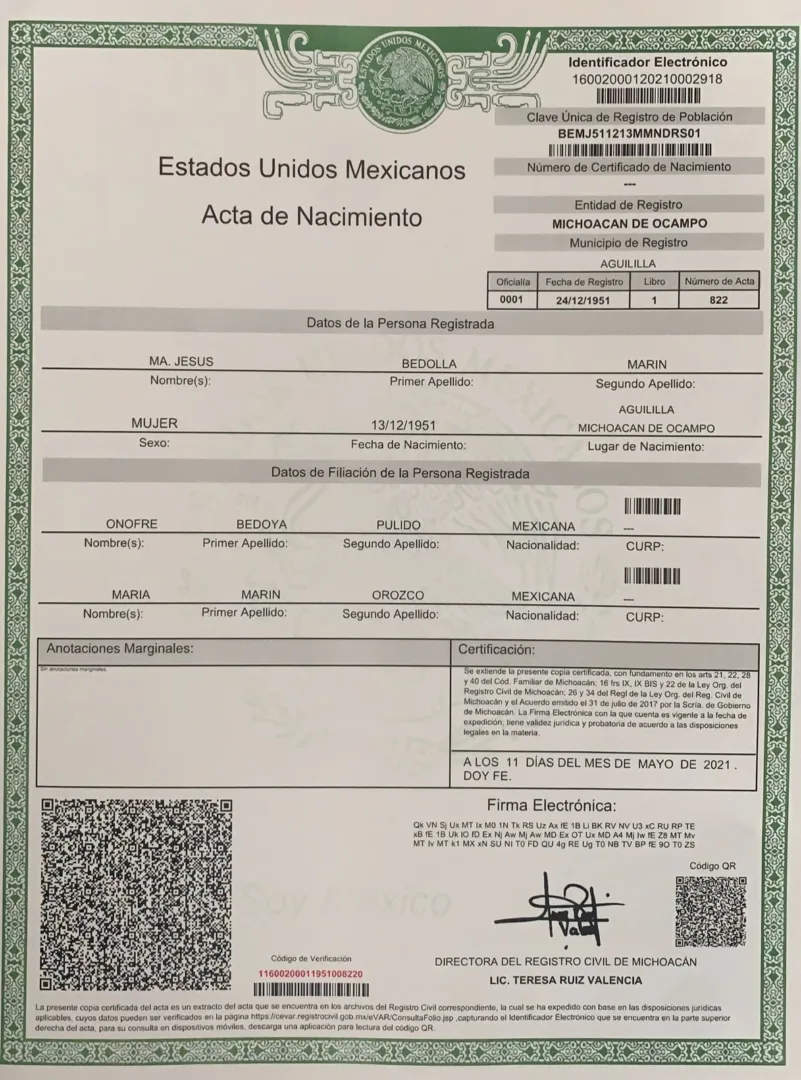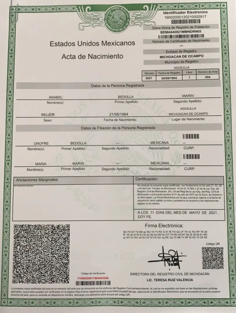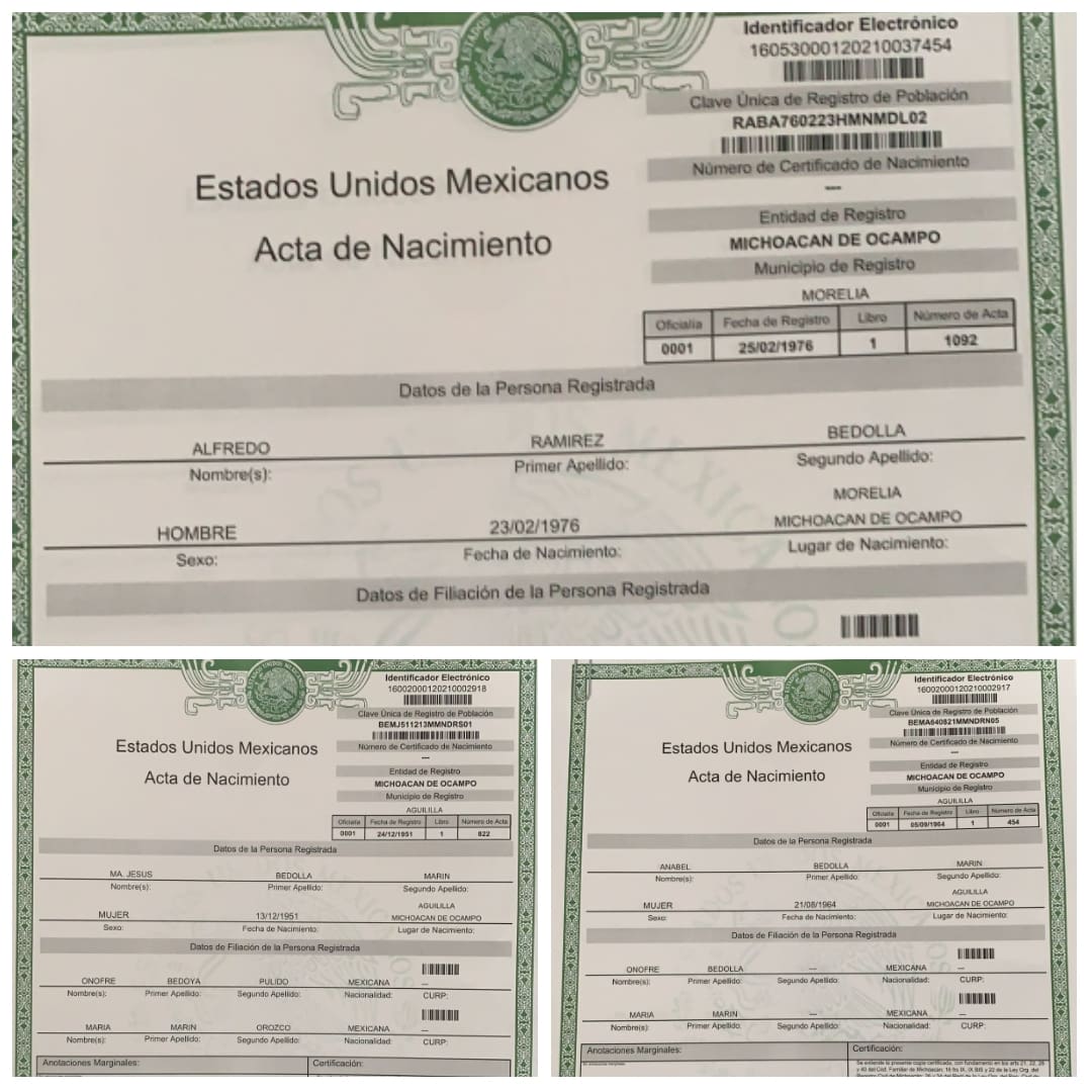 Actas de nacimiento comprueban parentesco de Bedolla con narcos
