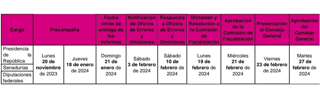 Precampañas iniciarán el 20 de noviembre de 2023 y concluirán el 18 de enero