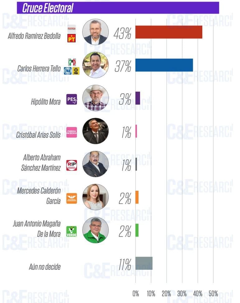 Si la elección fuera únicamente entre Ramírez Bedolla y Carlos Herrera, el 55 por ciento votaría por el candidato de Morena-PT.