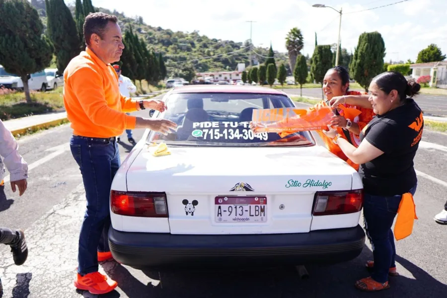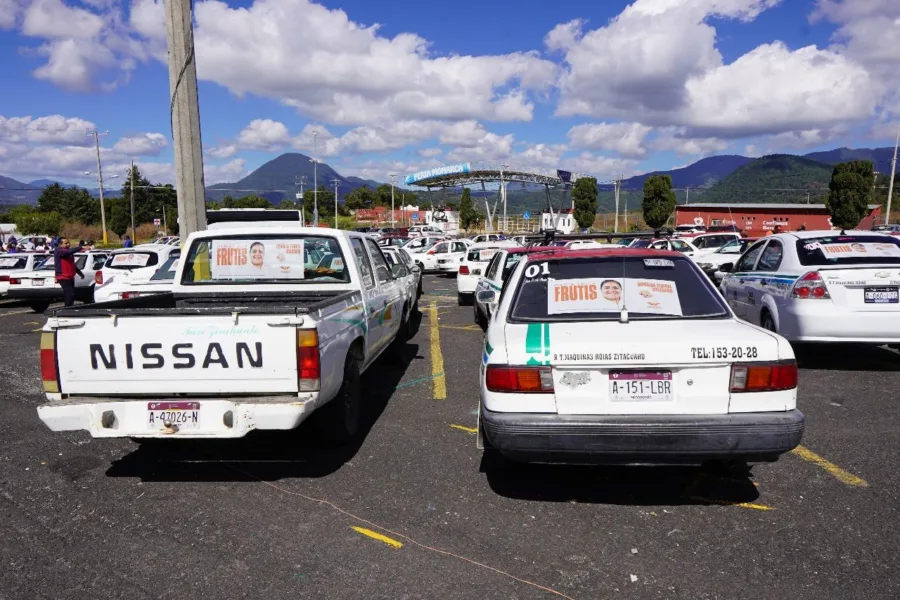 Apoyo masivo de taxistas a Licha Frutis, Carlos Herrera y Michelle Garibay en Zitácuaro