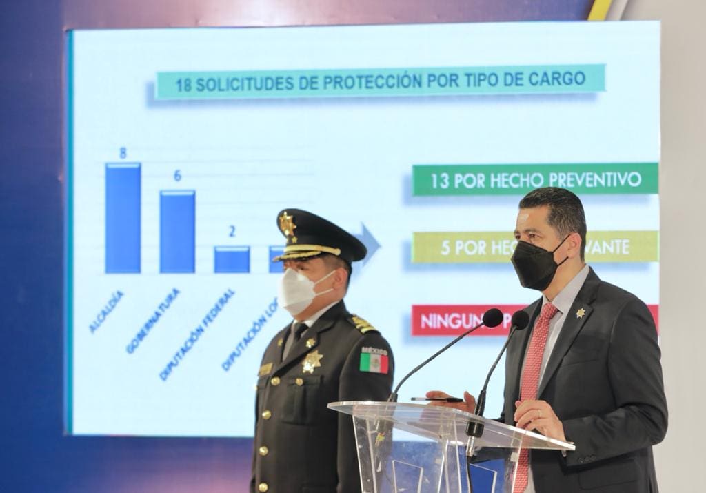 En conferencia de prensa, explicó que 13 de las solicitudes son a nivel preventivo y 5 a nivel relevante y que la SSP ha dispuesto de 168 elementos para brindar seguridad a las y los candidatos a gobernador, diputados locales, diputados federales y presidentes municipales.