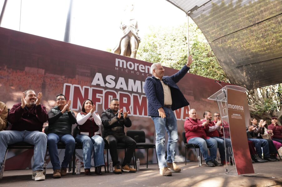 Ciudad Hidalgo, Michoacán, 18 de enero de 2026.- El gobernador de Michoacán, Alfredo Ramírez Bedolla, participó este sábado en una asamblea informativa de Morena con militantes en Ciudad Hidalgo, donde llamó a respaldar las acciones de la presidenta Claudia Sheinbaum Pardo.