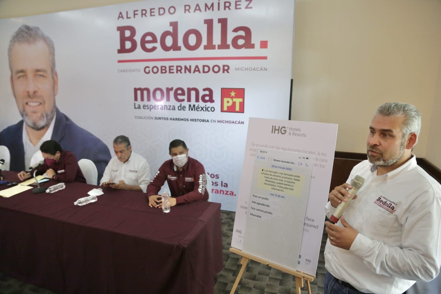 En conferencia de prensa, el dirigente nacional de Morena, Mario Delgado Carrillo, y el candidato de Morena-PT a la gubernatura, Alfredo Ramírez Bedolla, denunciaron que a través de mensajes de texto Silvano Aureoles ha dirigido amenazas contra morenistas que han sido críticos con su desempeño como gobernador.