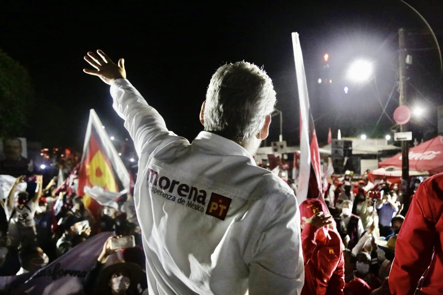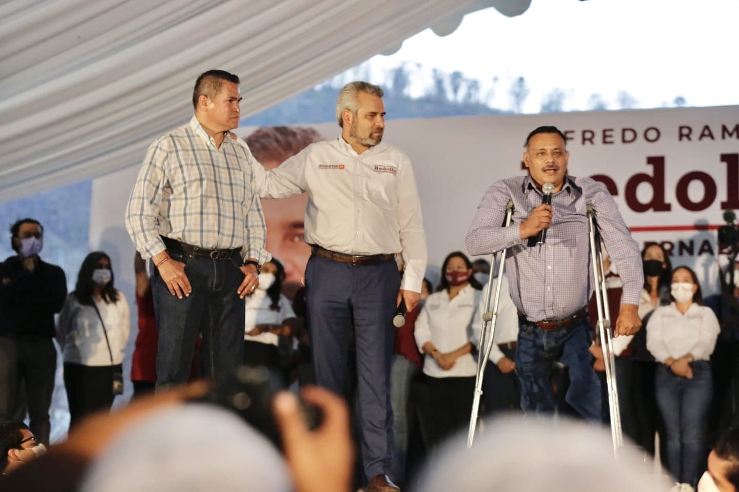 Morelia y Tarímbaro, 24 de mayo de 2021.- “Este día estamos 12 puntos arriba en las encuestas, es el resultado del trabajo duro a ras de tierra de todas y todos; casa por casa, colonia por colonia, comunidad por comunidad, para que las michoacanas y michoacanos conozcan nuestro proyecto, pero no hay que aflojar el paso”, afirmó Alfredo Ramírez Bedolla ante más de 4 mil simpatizantes en Morelia y Tarímbaro.