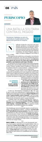 En dicho artículo de opinión se menciona que Carlos Torres Piña es uno de los nuevos rostros que se han destapado para contender por este cargo en las próximas elecciones del 2021, debido a que a instalado en toda la entidad 5 mil comités sociales por la transformación.