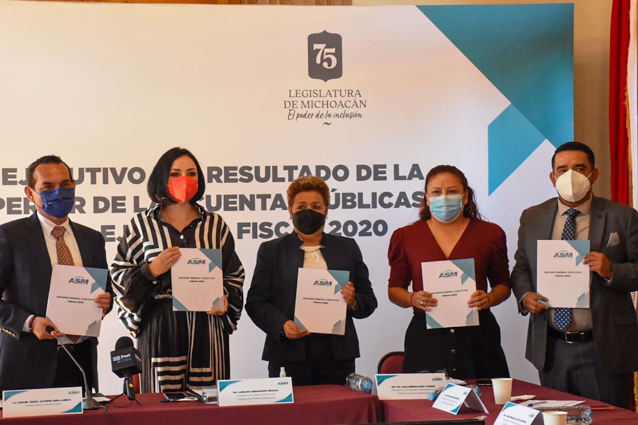 Morelia, Michoacán, 31 de enero de 2022. Con la obligación y la encomienda de realizar un análisis y estudio con el mayor profesionalismo e imparcialidad, el Congreso del Estado, recibió el Informe General Ejecutivo del Resultado de la Fiscalización Superior de las Cuentas Públicas correspondiente al Ejercicio Fiscal 2020.