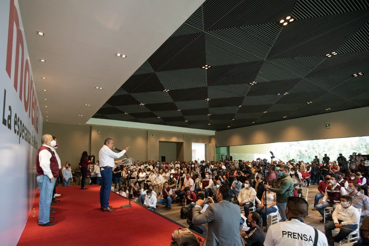 En presencia del dirigente nacional de Morena, Mario Delgado Carrillo, así como de la secretaria General de este instituto político, Citlali Hernández Mora; Raúl Morón acompañó la presentación de Alfredo Ramírez Bedolla como candidato de Morena para contender por la gubernatura de Michoacán, a quien le manifestó su total respaldo para consolidar la 4T en la entidad.