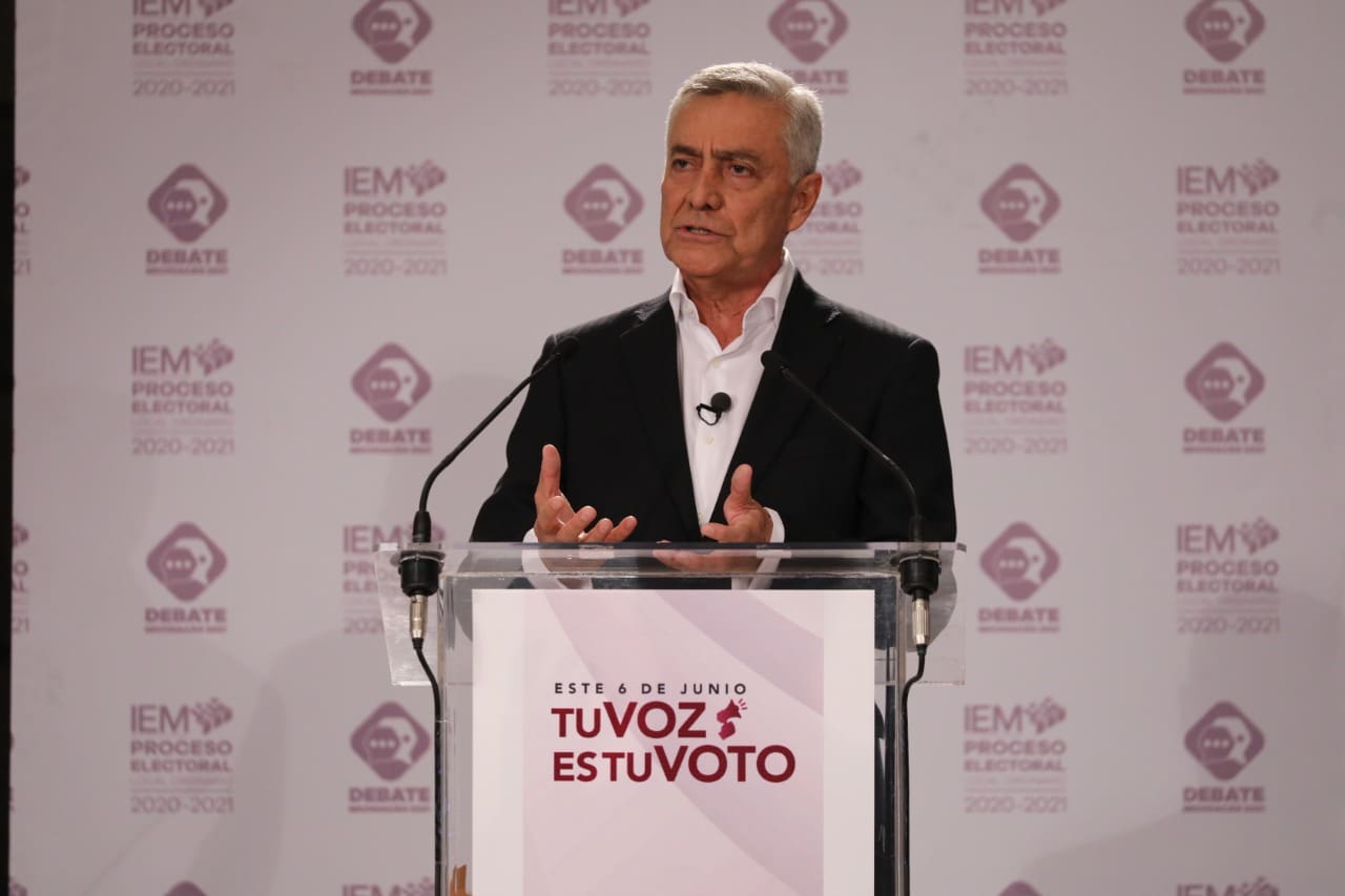 Morelia, Mich., a 21 de abril 2021.- En el primer debate oficial entre aspirantes a la gubernatura, Cristóbal Arias Solís, candidato de Fuerza por México a la gubernatura (FxM), se mostró como un abanderado que va con las manos limpias, libre de dinero manchado o de complicidades con grupos criminales, y ofreció un gobierno de “cero tolerancia” a la corrupción y a la impunidad, con la seguridad pública como su mayor prioridad.