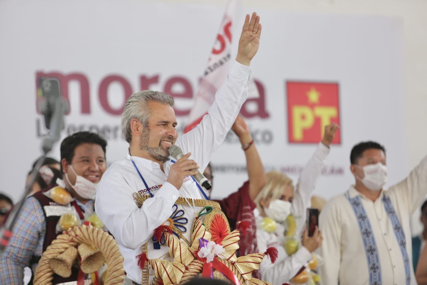 Región Bajío, 01 de junio del 2021.- El candidato a gobernador de Morena-PT, Alfredo Ramírez Bedolla, dijo que aunque todas las encuestas le dan ventaja a la coalición Juntos Haremos Historia en las preferencias del voto, “¡no debemos confiarnos!, vamos a ganar la elección en las urnas, y a hacer valer la voluntad popular con nuestros votos”, afirmó.