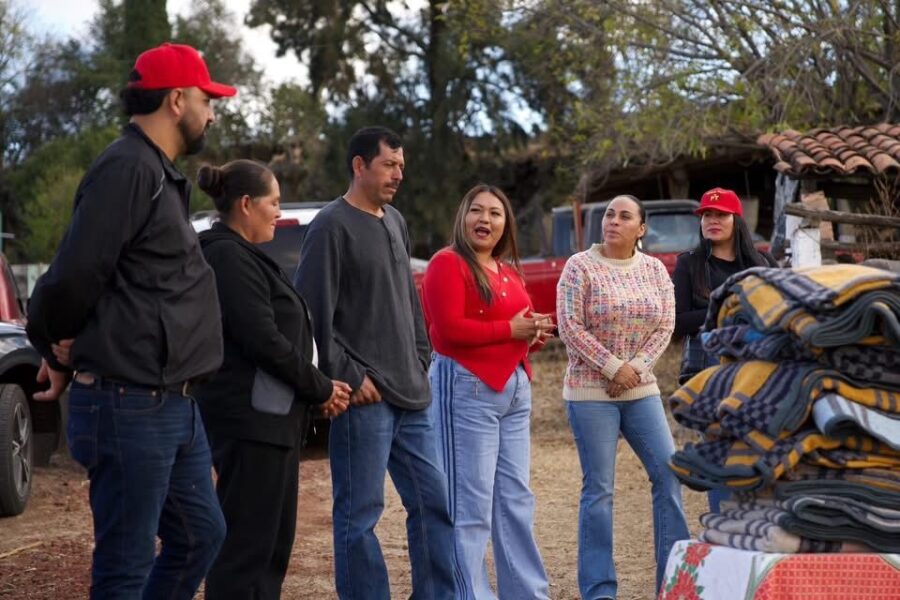 En Maravatío, Bernal Martínez recorrió colonias junto a la regidora Mari Ruth Arellano y miembros de la comisión ejecutiva municipal del PT, donde entregó cobijas como parte de la campaña invernal “Abrigando un Corazón”.