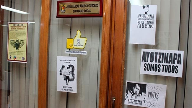 Manifestó que los diputados del PRD colocaron carteles en sus oficinas de protesta por la desaparición de normalistas, y es una muestra de apoyo hacia las familias que hoy sufren por la desaparición de los estudiantes, dolor que es compartido por los mexicanos y ciudadanos de diversos países.