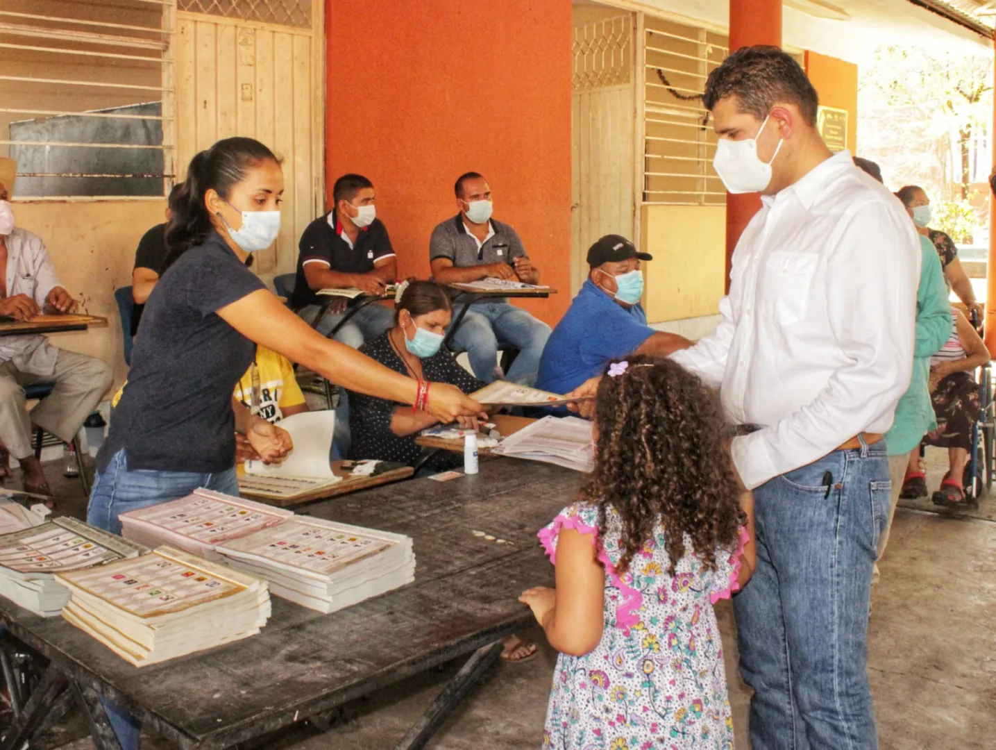 El candidato de la Alianza Va Por México a la diputación federal del Distrito 03, Octavio Ocampo Córdova, emitió su voto en la jornada electoral de este domingo en la tenencia de Melchor Ocampo, en el municipio de Tuzantla