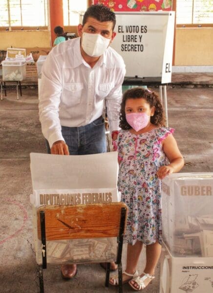 Acompañado por familiares acudió a la casilla ubicada en la sección 2146 de la escuela “Melchor Ocampo” de esta localidad donde ya se veía una nutrida participación de los ciudadanos.