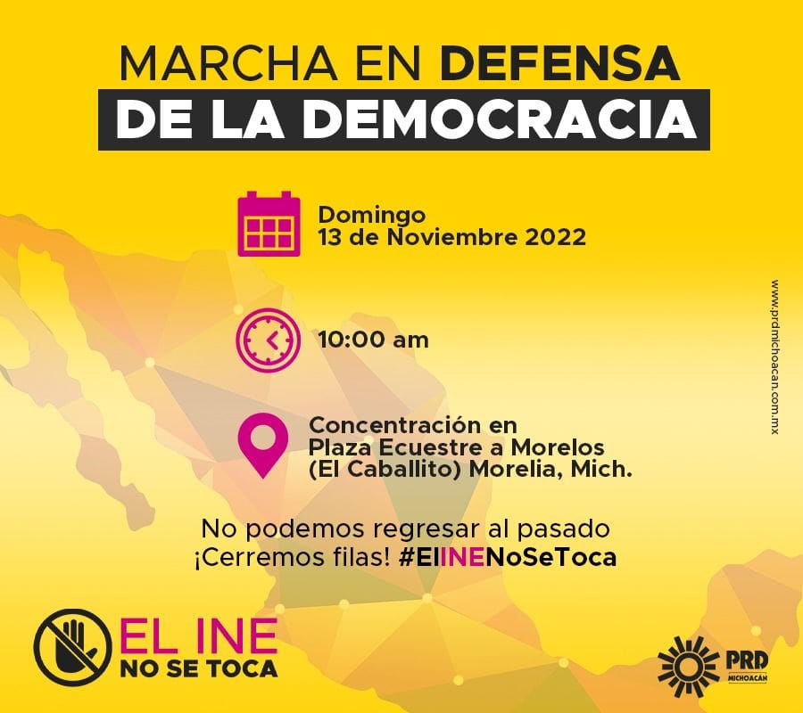 “No podemos retroceder al pasado, ¡cerremos filas!, ¡el INE no se toca!”, bajo ese lema es como miles de perredistas preparan la movilización en defensa de la democracia, que partirá desde la Plaza Encuestre a Morelos, mejor conocida como “El Caballito”, en punto de las 10:00 horas.