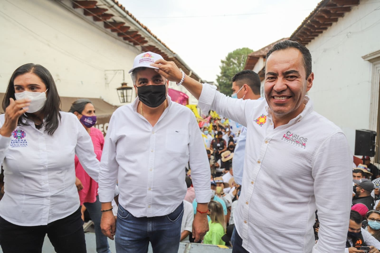Acompañaron a Carlos Herrera, el candidato a la presidencia municipal de Uruapan de Equipo por Michoacán, Miguel Paredes; la candidata a diputada federal, Edna Díaz Acevedo; Luisa María Calderón Hinojosa, coordinadora de México Libre, así como las dirigencias municipales del PRI, el PAN y el PRD.