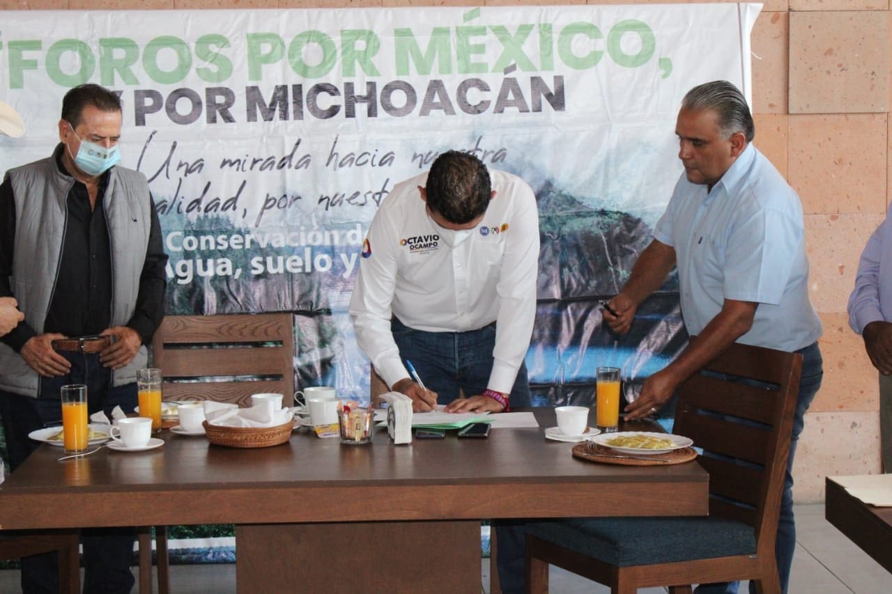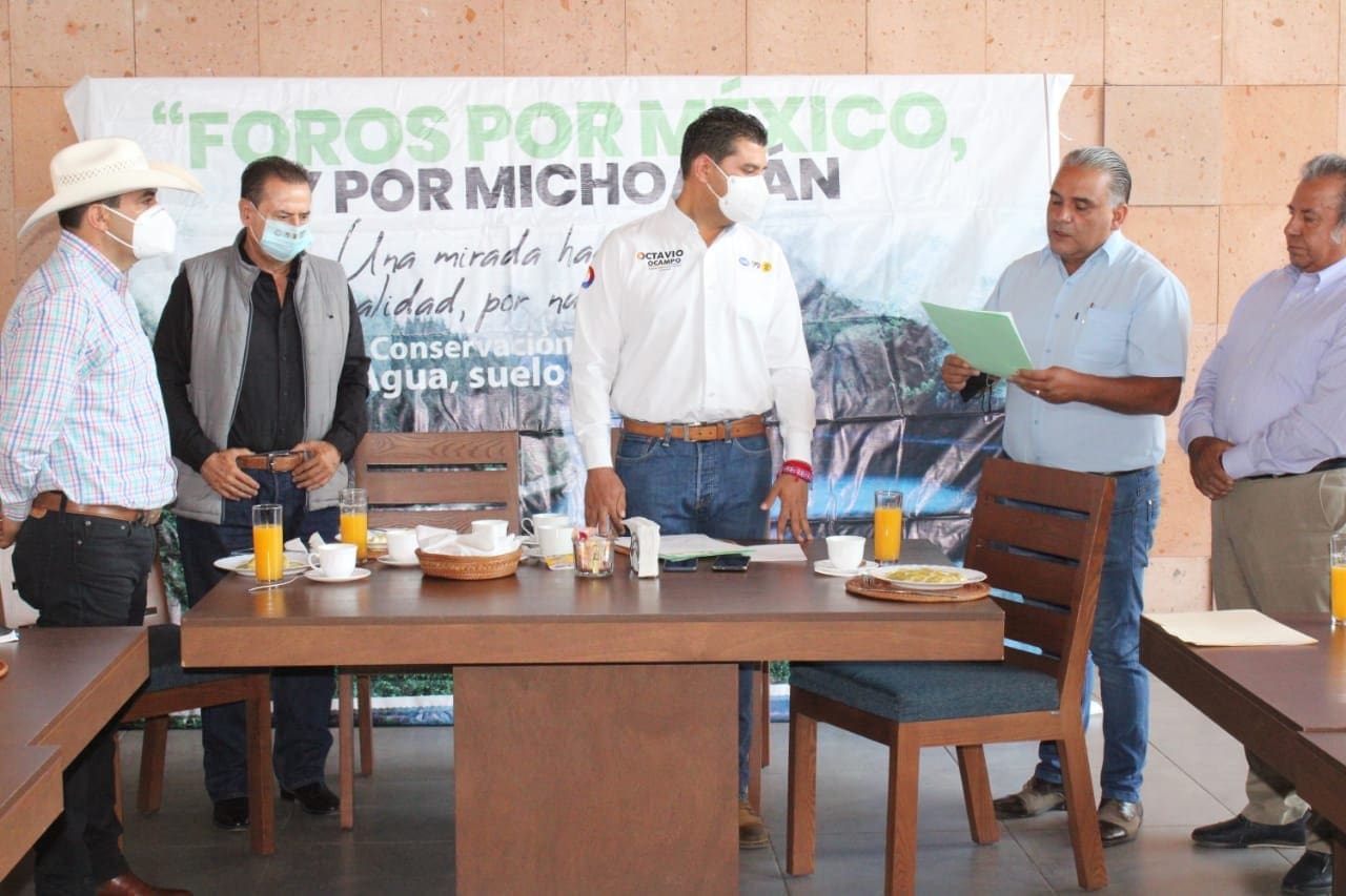 Durante un encuentro con ambientalistas, profesionistas e integrantes de ejidos y comunidades, fue entregado al aspirante a la Cámara de Diputados un documento con una serie de propuestas en materia ambiental , producto de los “Foros por México, por Michoacán”. Estas iniciativas recogen las necesidades urgentes en la región y en el país sobre los problemas en materia de los bosques, el agua y los suelos.