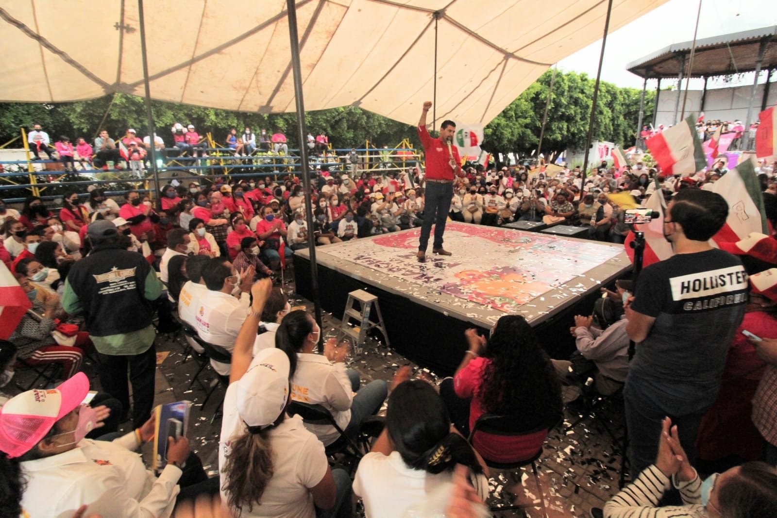 A pocas semanas de concluir campaña, la efervescencia en apoyo de los candidatos de PRD, PRI y PAN se dejó patente en el corazón de Tuxpan, primero en una reunión masiva y posteriormente, en una marcha a favor de la paz, las cuales no se detuvieron a pesar de la lluvia.