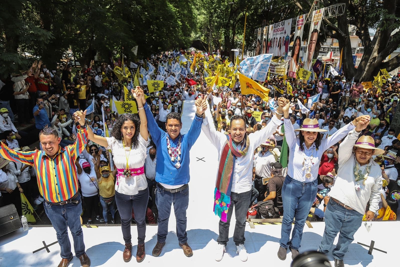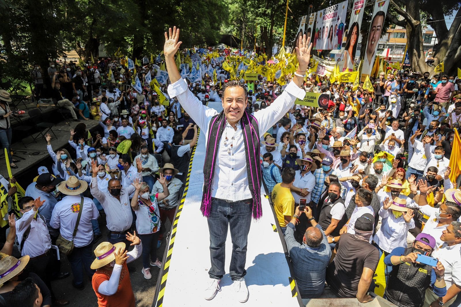 Ante más de 12 mil michoacanos y michoacanas que asistieron al cierre de campaña regional en Uruapan, el candidato común del PRI, el PAN y el PRD advirtió que ni con dádivas, ni con dinero, ni torciendo la ley, el equipo marrón ganará las voluntades, ya que la convicción de las y los michoacanos ha quedado de manifiesto en los más de 50 días de campaña: el Equipo por Michoacán será el triunfador.