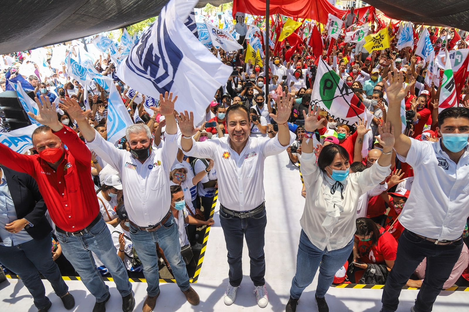 Acompañaron a Carlos Herrera en el mitin de Sahuayo, la candidata a diputada local, Mónica Pérez; el candidato a diputado federal, Rodrigo Sánchez; los candidatos a la presidencia municipal de Sahuayo, Leonardo Gálvez y Manuel Gálvez; la dirigente del PAN Michoacán, Teresita de Jesús Herrera Maldonado; el dirigente estatal del PRI, Eligio González; y el delegado especial nacional del PRD en el estado, Víctor Manuel Manríquez.