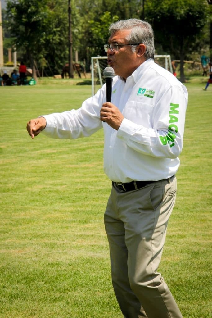 Huandacareo, Michoacán, a 23 de mayo del 2021.- Para garantizar la seguridad en el estado, también es necesario crear más espacios deportivos para el desarrollo de los jóvenes, así lo expresó el candidato a la gubernatura del estado por el Partido Verde Ecologista de México (PVEM), Juan Antonio Magaña de la Mora.