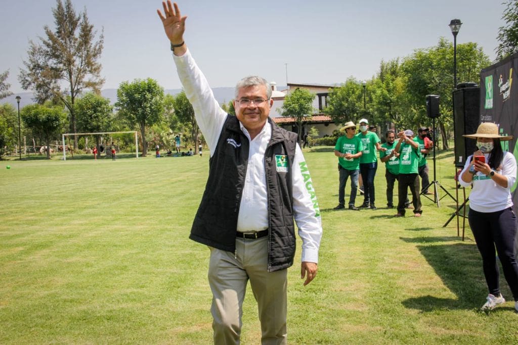 Huandacareo, Michoacán, a 23 de mayo del 2021.- Para garantizar la seguridad en el estado, también es necesario crear más espacios deportivos para el desarrollo de los jóvenes, así lo expresó el candidato a la gubernatura del estado por el Partido Verde Ecologista de México (PVEM), Juan Antonio Magaña de la Mora.