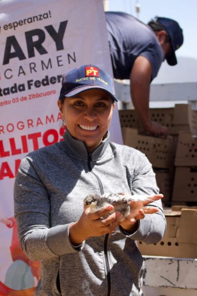 La legisladora también visitó varias localidades de Zitácuaro, entre ellas La Gironda, El Llano de la Luz, Valle Verde, El Llano de San Felipe y El Bordo, en Ocurio, donde entregó el programa “Pollitos y Familia”. Las comunidades recibieron con agrado esta iniciativa orientada al apoyo directo de los hogares.
