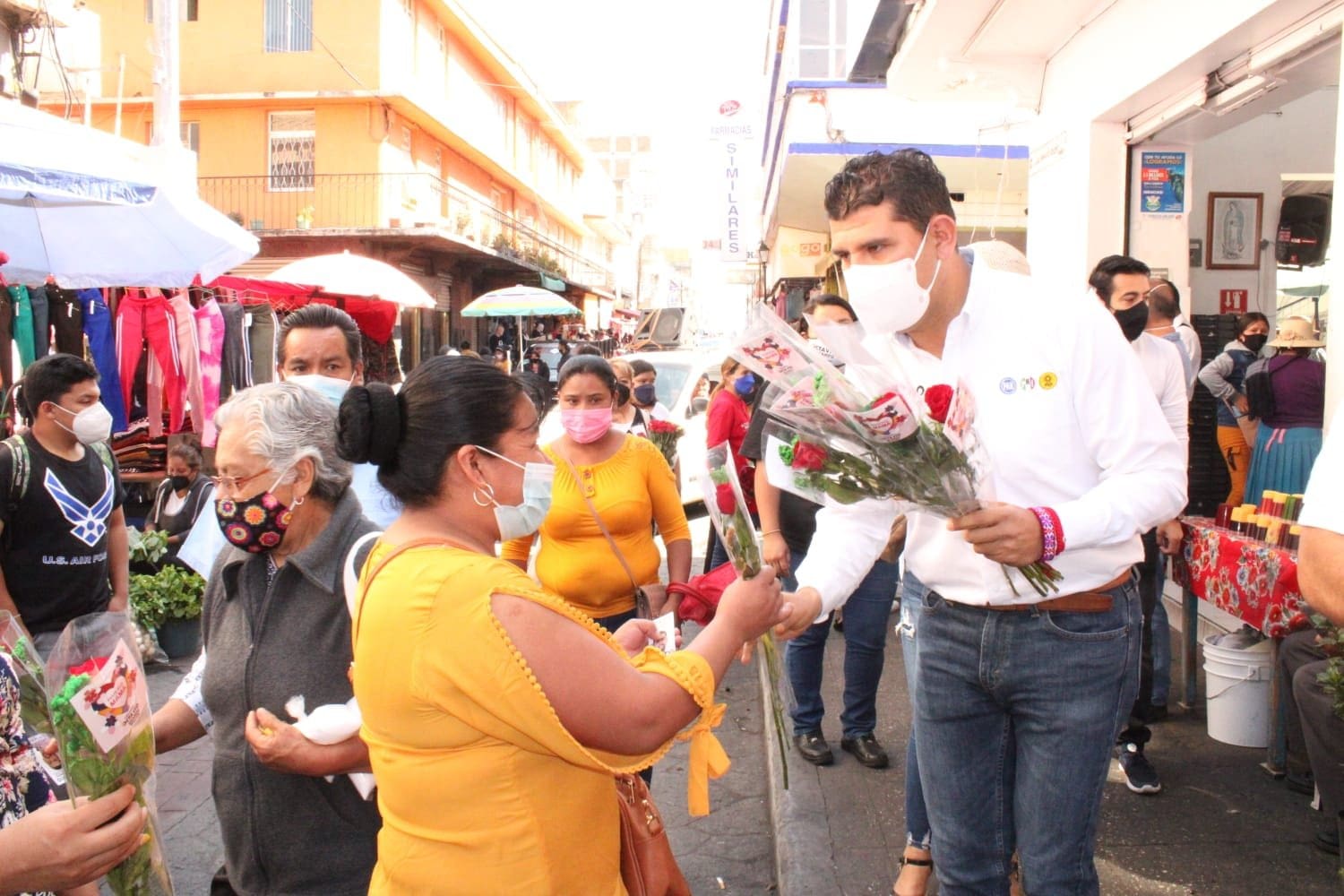 Zitácuaro, Mich., A 11 de mayo de 2021. A lo largo del 10 de mayo, el candidato de Va por México a la diputación federal por el Distrito 03, Octavio Ocampo saludó y felicitó a madres de familia en Zitácuaro con motivo del Día de las Madres, en diversos puntos de la ciudad.