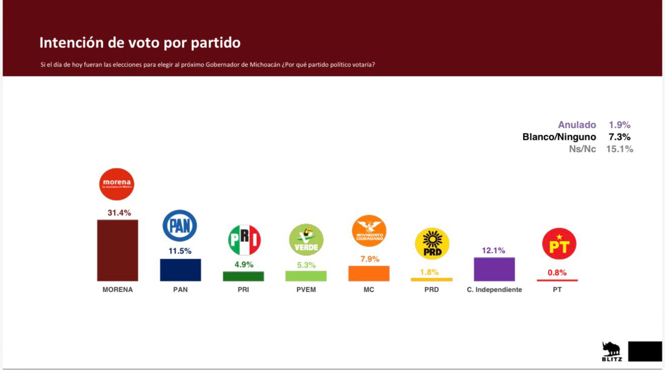 Morena encabeza intención de voto en Michoacán, según encuesta de Blitz
