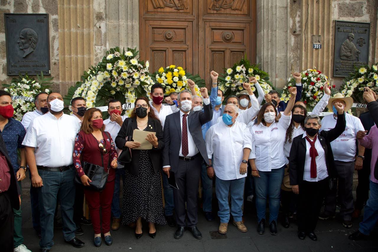 Catedráticos y empleados de la UMSNH invitaron a Ramírez Bedolla a un acto homenaje a Miguel Hidalgo y Costilla por el aniversario 268 de su natalicio, y a la colocación de una ofrenda floral a las puertas del Colegio de San Nicolás.