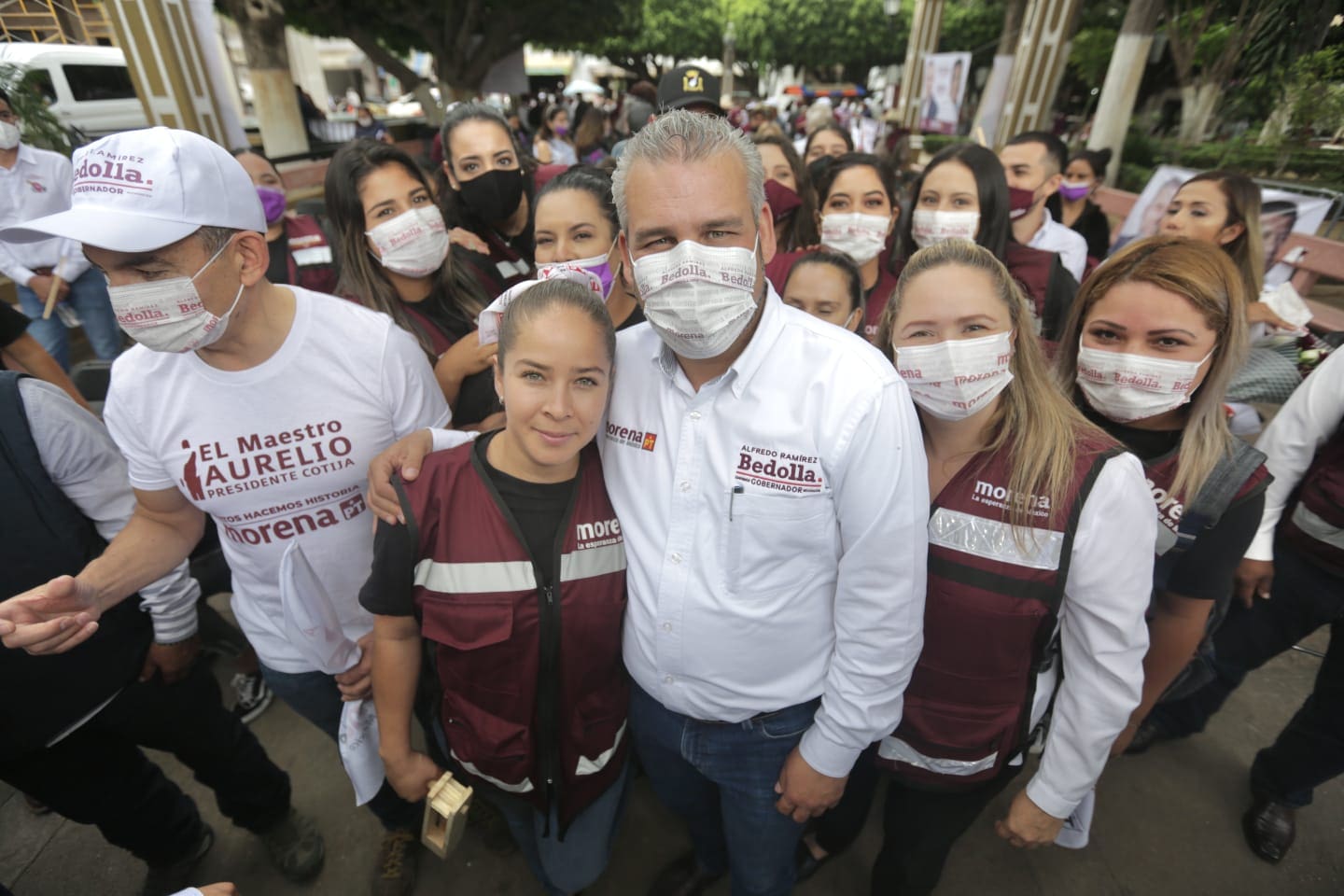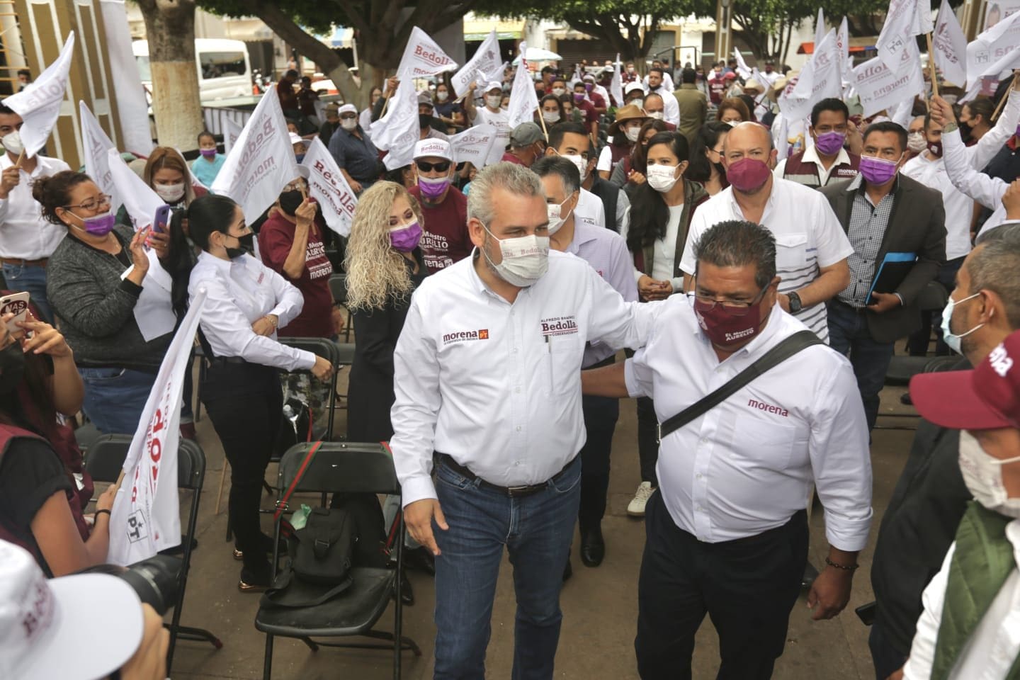 Finalmente, el candidato pidió a mujeres y hombres que se congregaron en la plaza principal de Cotija, salir a votar el próximo 6 de junio, y afirmó que se está en la ruta de la consolidación de la Cuarta Transformación en Michoacán.