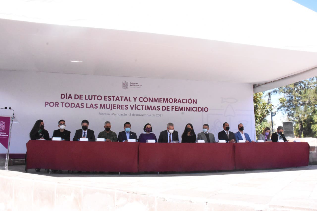 Morelia, Michoacán, 03 de noviembre de 2021. La presidenta de la Mesa Directiva del Congreso del Estado, Adriana Hernández Íñiguez, acudió en representación del Poder Legislativo al acto por el Día de Luto Estatal y Conmemoración por Todas las Mujeres Víctimas de Feminicidio.