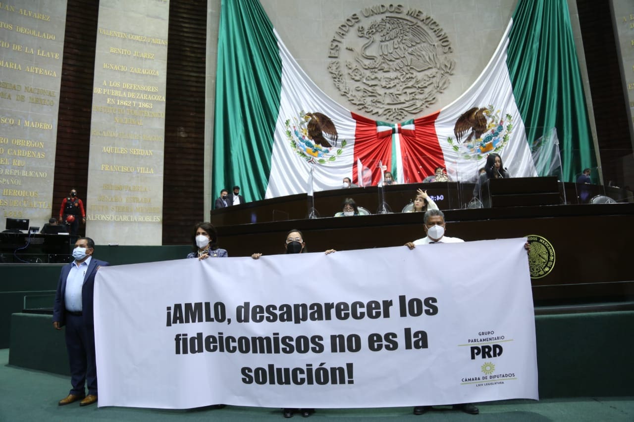 Por ser un acto que atenta al desarrollo y afecta a los víctimas, exbraceros, al financiamiento rural, a las comunidades científica, cultural y deportiva, el Grupo Parlamentario del PRD en el Congreso de la Unión, no respalda la extinción de 109 fideicomisos, subrayó el vicecoordinador José Guadalupe Aguilera Rojas, quien celebró que se lograra frenar la sesión este día.