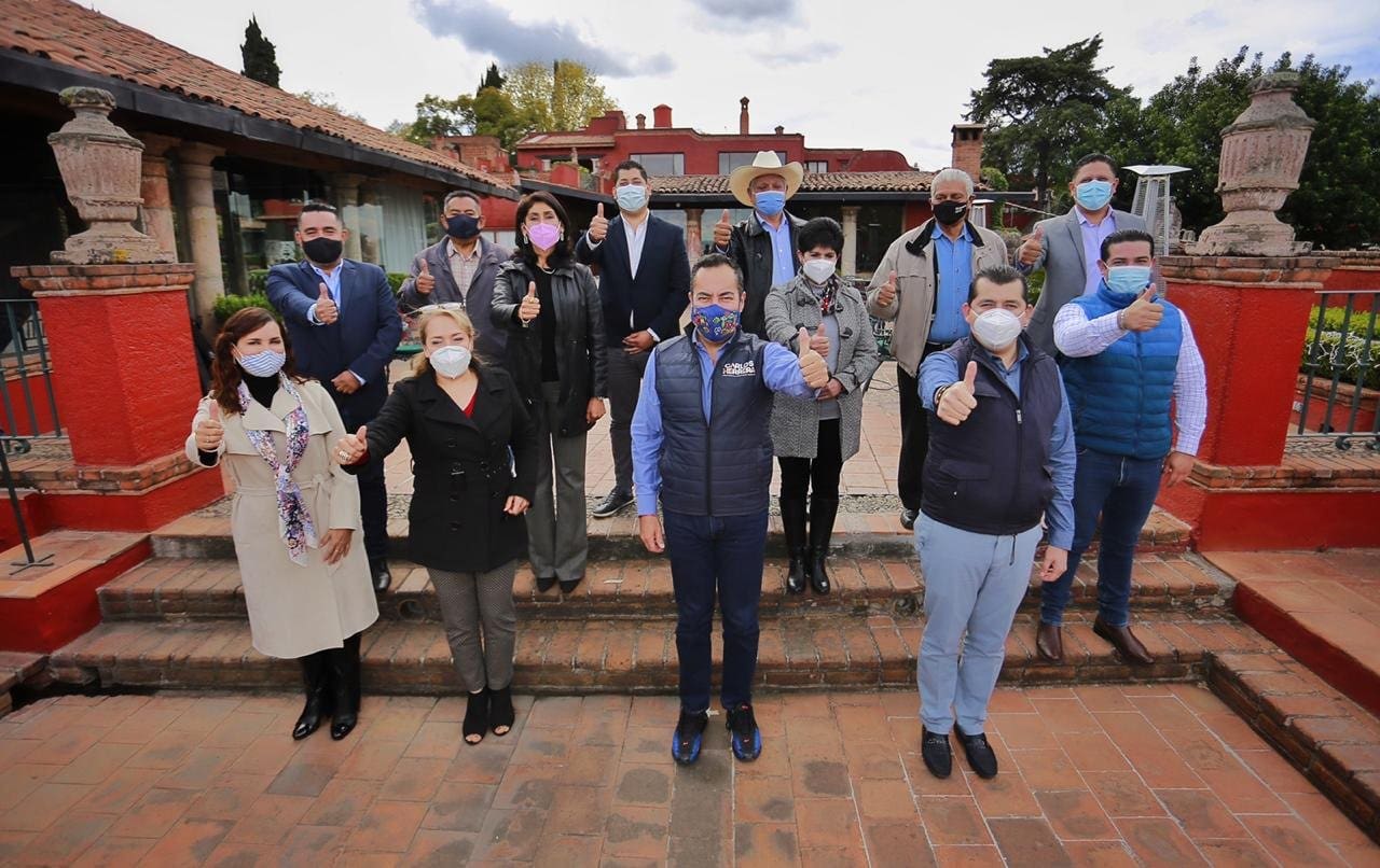 “En reunión con las y los presidentes municipales del Partido Acción Nacional, coincidimos en que vienen retos importantes que deberemos afrontar como equipo para el beneficio de nuestros paisanos, entre los cuales se encuentran el cuidado de la salud de las y los michoacanos y la reactivación económica”, expuso.
