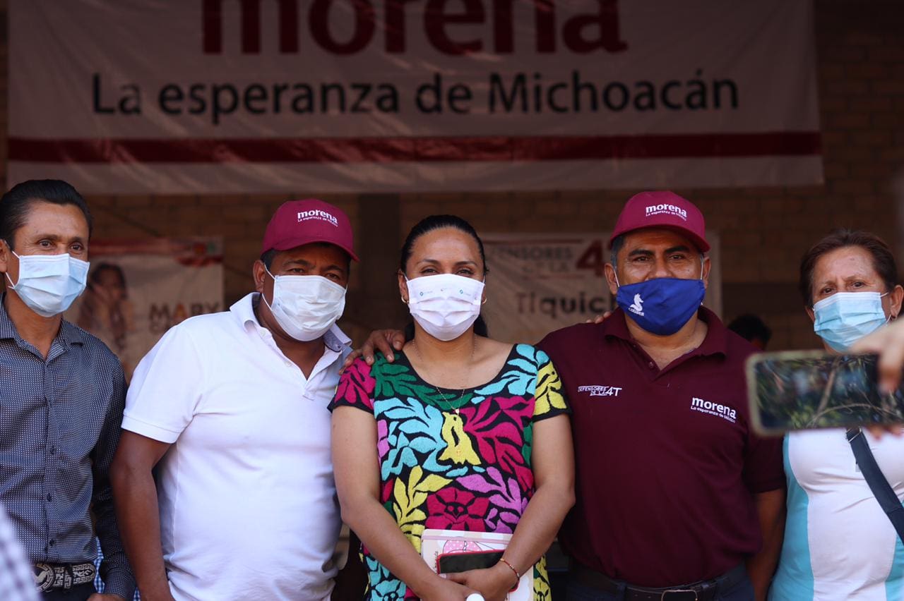 Tiquicheo Michoacán.- Durante un recorrido por algunos municipios de la Tierra Caliente del Estado, la abanderada de la coalición “Juntos Hacemos Historia” visitó importantes liderazgos del Movimiento de Regeneración Nacional y del Partido del Trabajo, con el objetivo de fortalecer los trabajos de las izquierdas en los municipios del oriente de Michoacán.