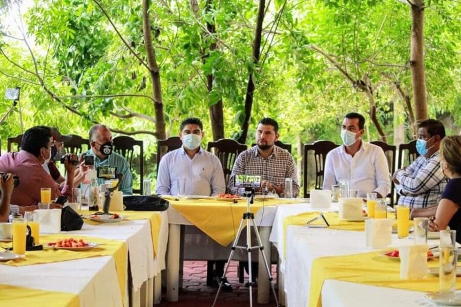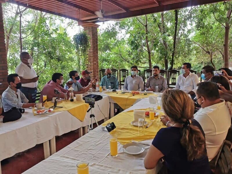 En este encuentro con la prensa estuvo acompañado por Pablo Varona, presidente municipal electo de Huetamo, así como regidores también electos; Juan Luis García, excontendiente a diputado local; además de los dirigentes municipales del PRD, Demesio Baltazar y del PAN, Raúl Santibáñez.