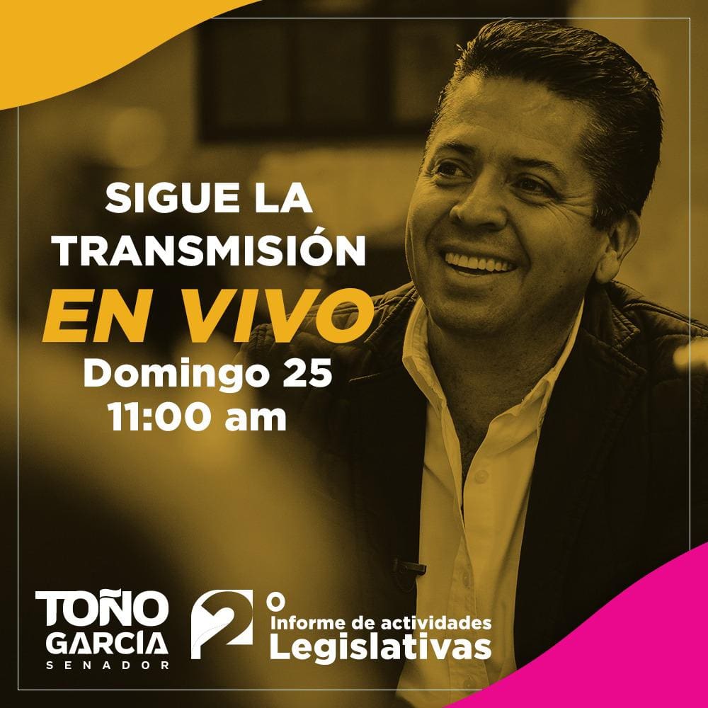 Haciendo uso de las tecnologías de la información, el Senador de la República transmitirá en vivo su Segundo Informe de Actividades Legislativas a través de sus cuentas oficiales en redes sociales.