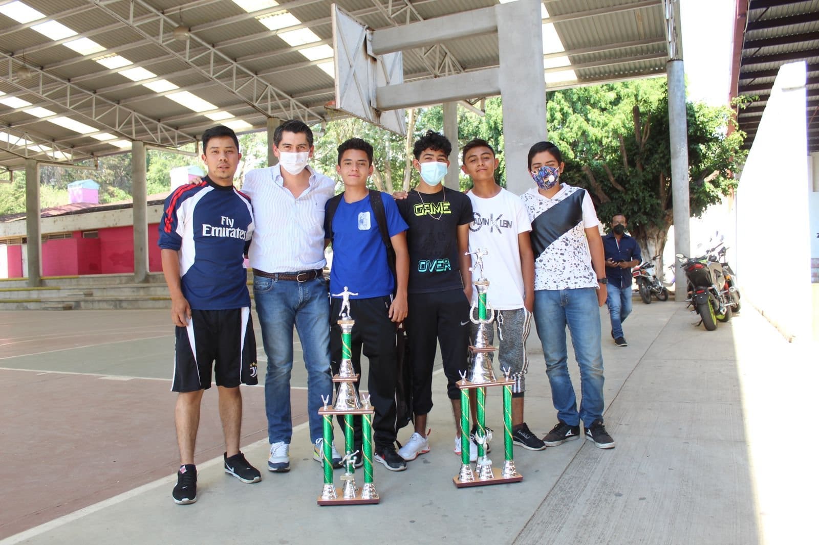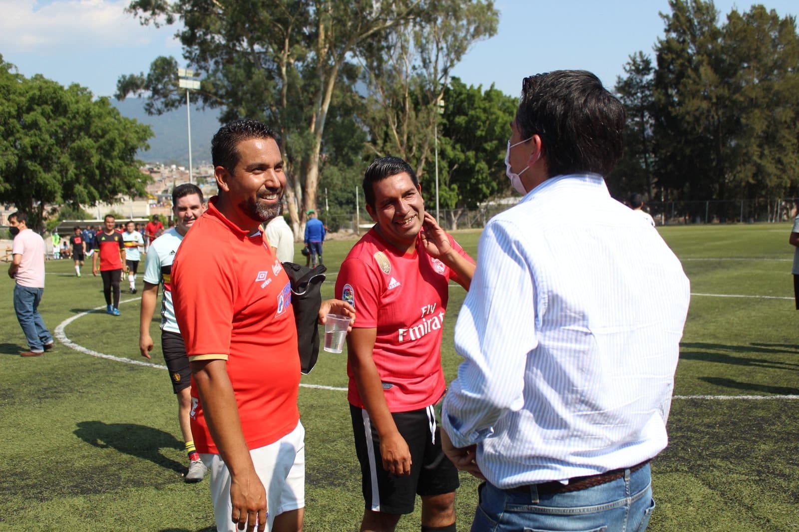 El candidato a la alcaldía acudió al Cuadrangular de futbol, realizado en la unidad deportiva de La Joya, donde realizó la entrega de trofeos a las cuatro ligas participantes en este evento: Rafael Baeza, Salesiano, El Polvorín y La Joya.